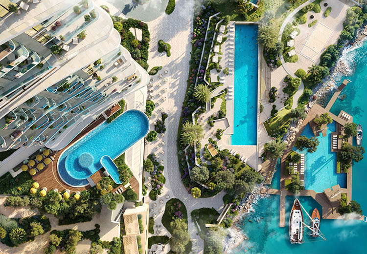 - Views: Breathtaking vistas of the Arabian Gulf, Dubai skyline, and serene bay from private terraces.